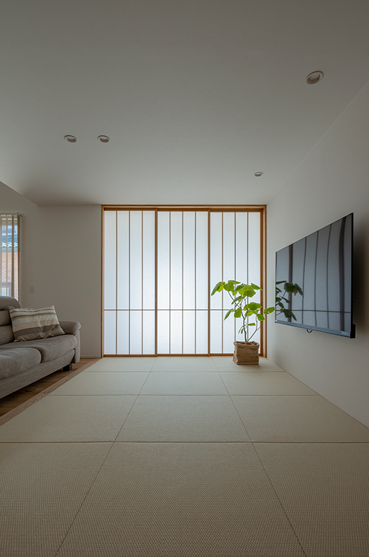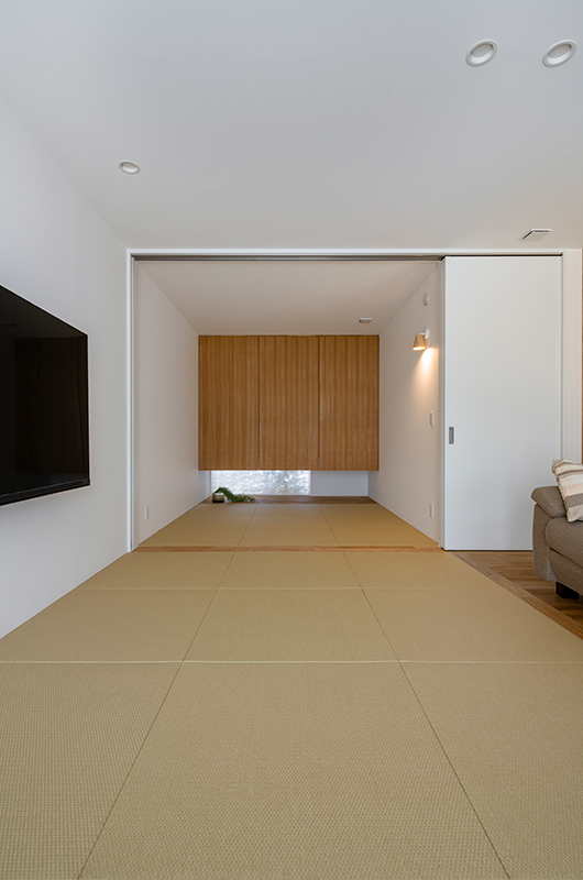 畳リビングと和室がひとつに繋がった部屋は念願の「旅館」そのもの。