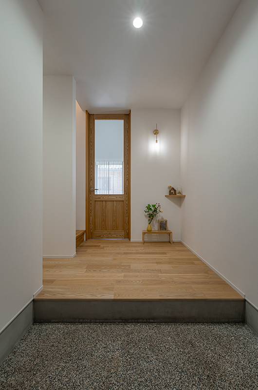▲暗くなりがちな玄関を造作ドアのガラスで明るく