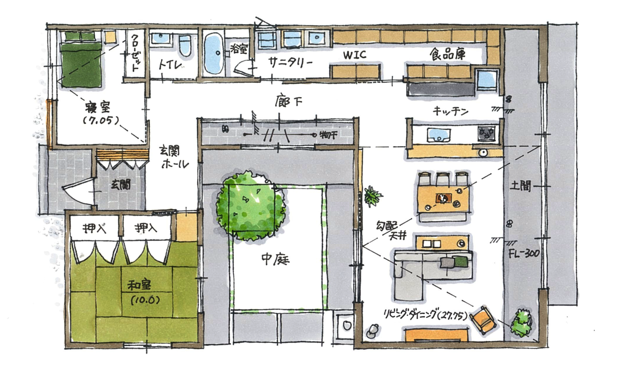 - 3つの庭の緑が日常にとけ込む、木に包まれた暮らし