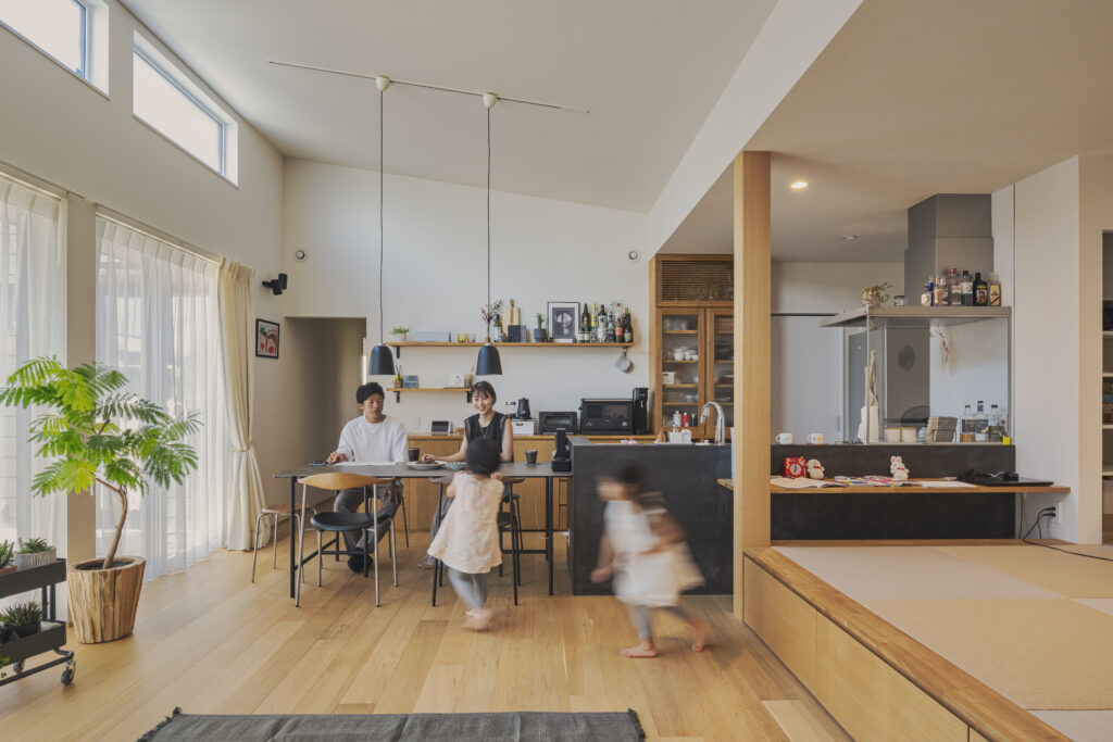- 勾配天井と小上がりで生まれる、奥行きと開放感のあるLDK