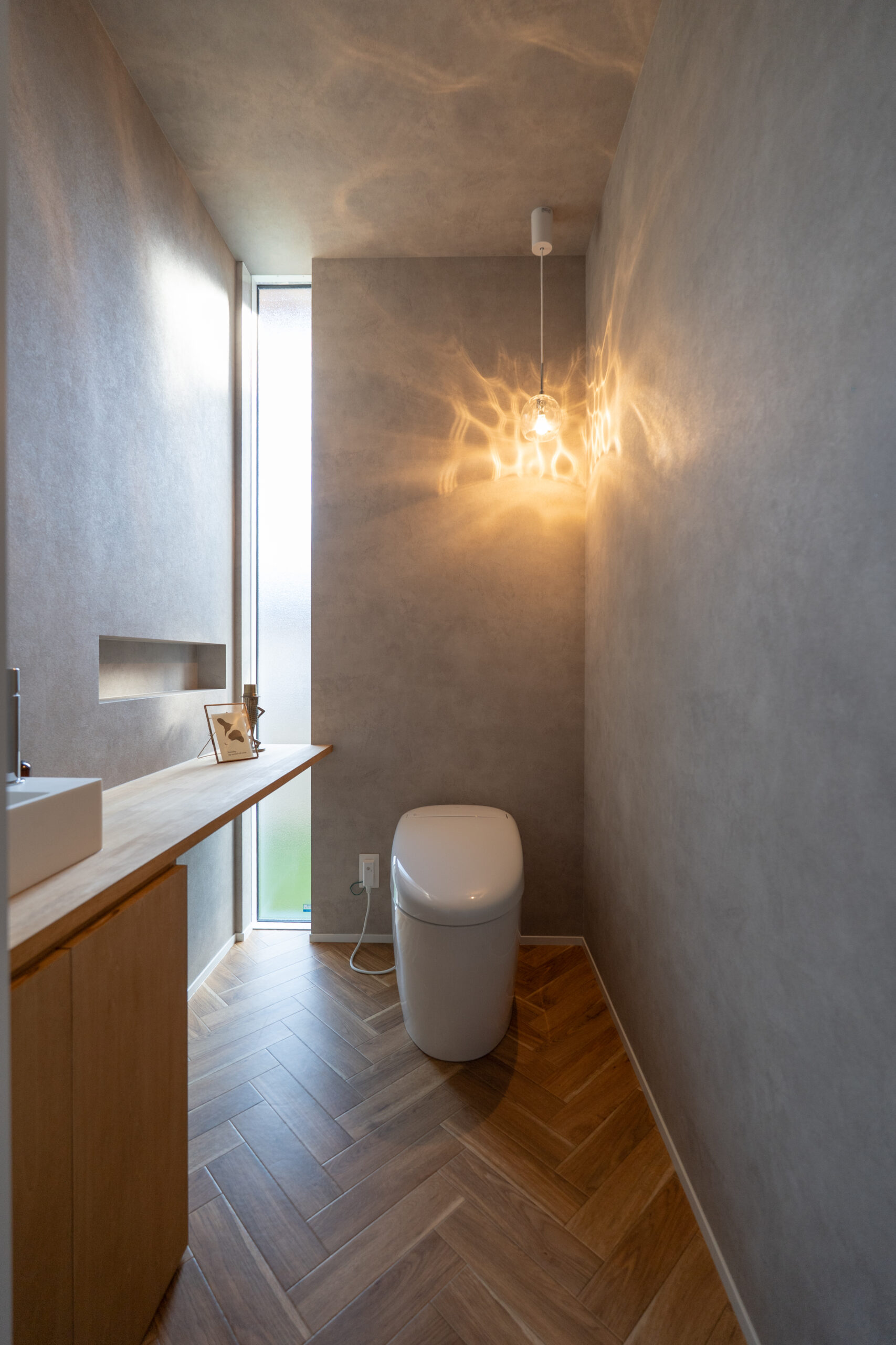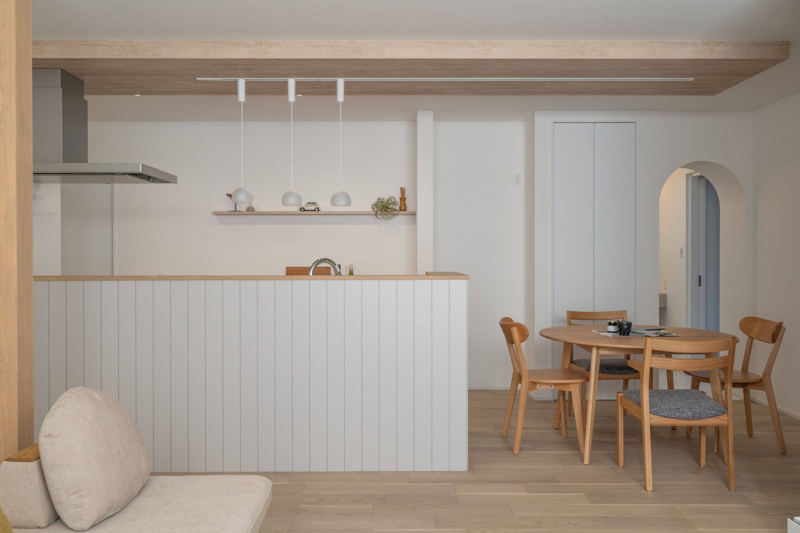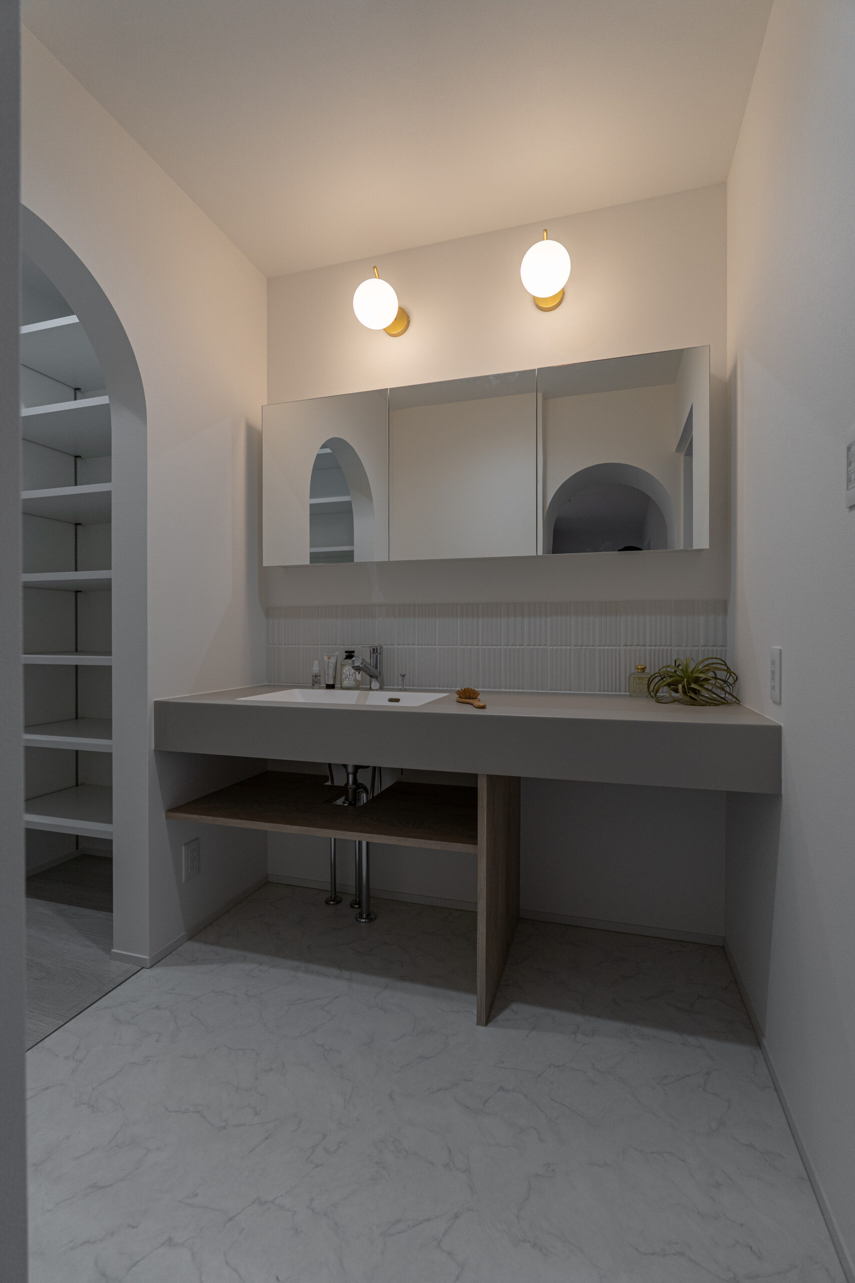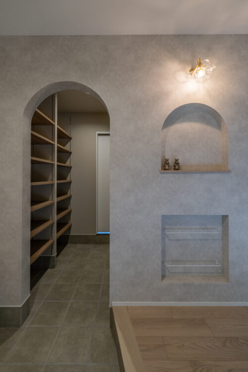 - アーチの垂れ壁とニッチが、やさしい雰囲気で迎えてくれる玄関