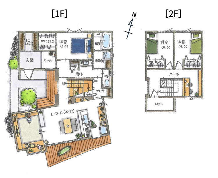 - 家族を緩やかに繋ぐ「コの字型の中庭」と「回遊動線」