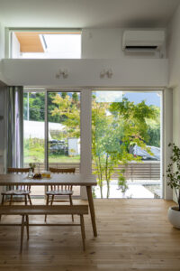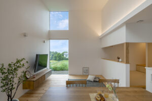- 外と繋がる「大窓と勾配天井のリビング」