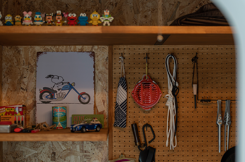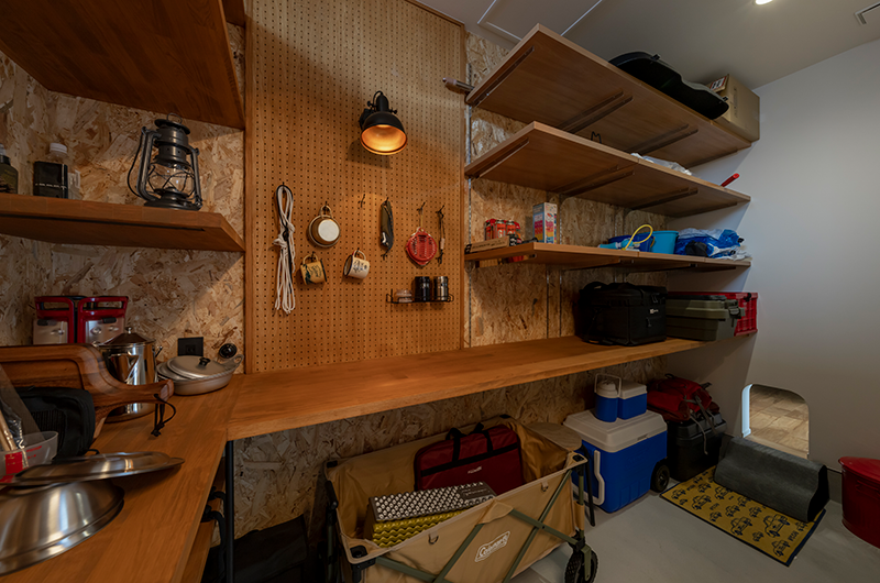 ▲使うたびにワクワクする、アウトドア好きのための収納空間