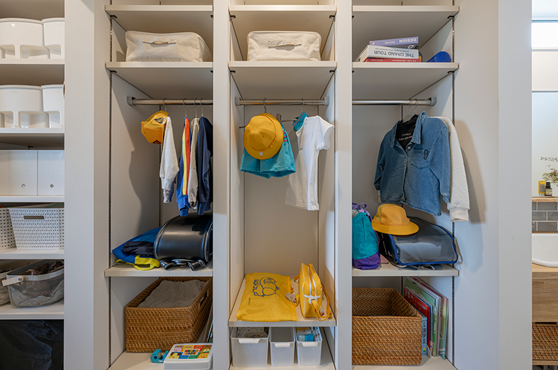 ▲帰宅して手洗いを済ませたら隣の専用棚にお片付け。