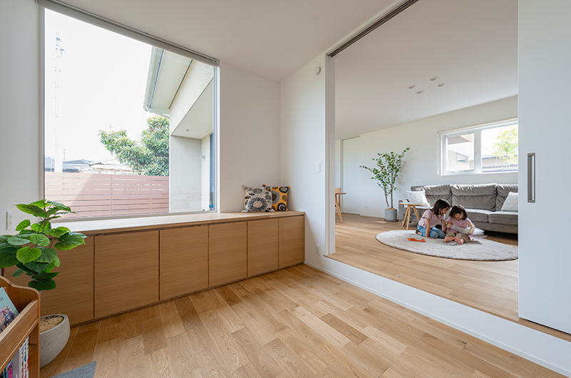 ▲「ここが遊ぶ場所」と分かるように床を一段下げた。