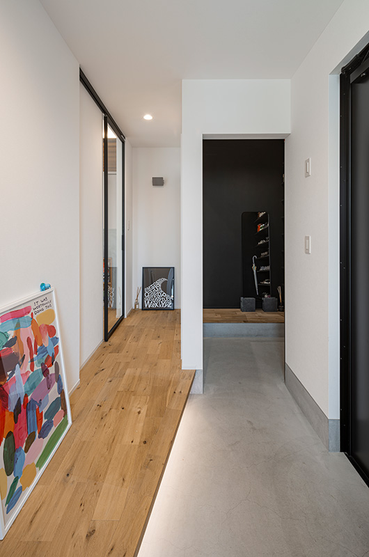 ▲家族の出入りは土間収納から。いつでも整った玄関に