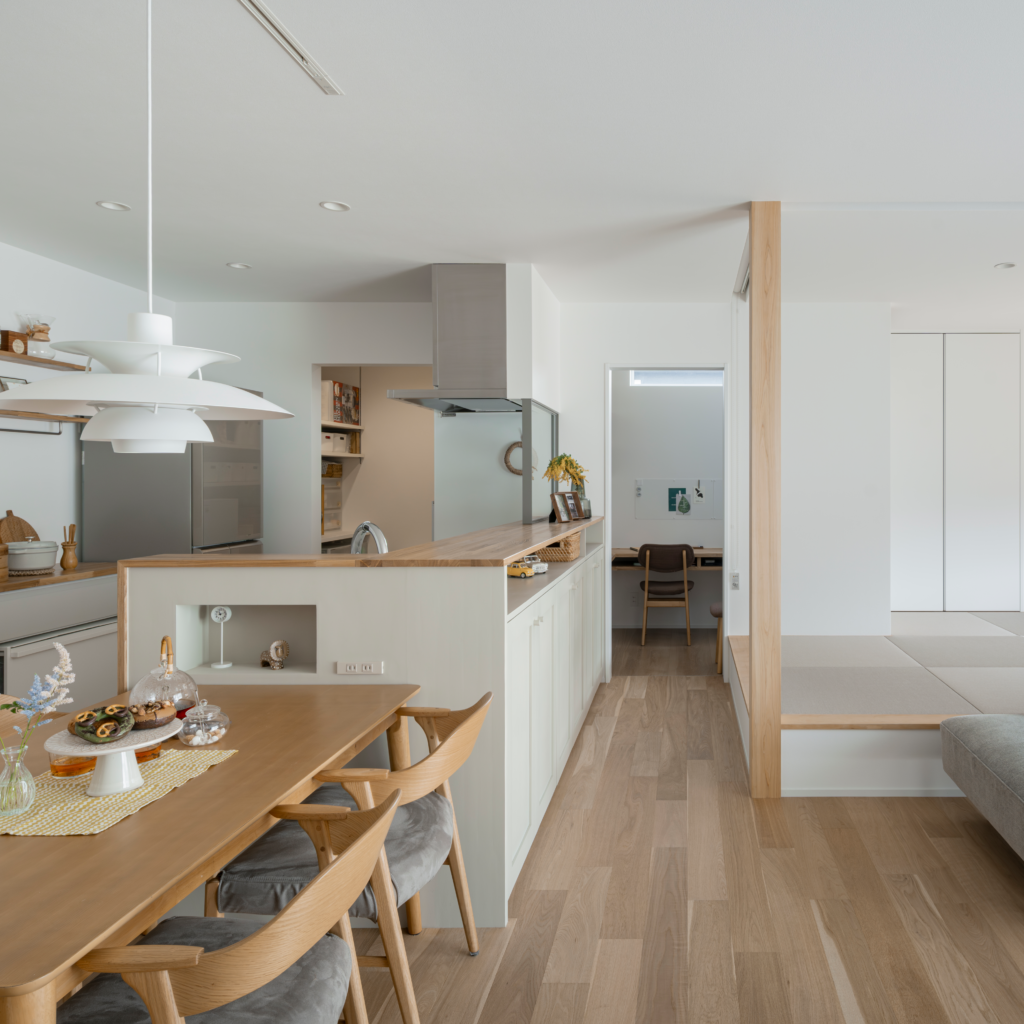 あたたかな畳スペースでひと息つける切妻屋根の平屋