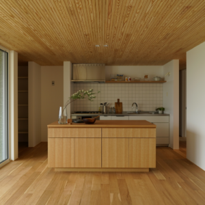 - 背面キッチンと作業台で機能美と団らんを両立したII型キッチン