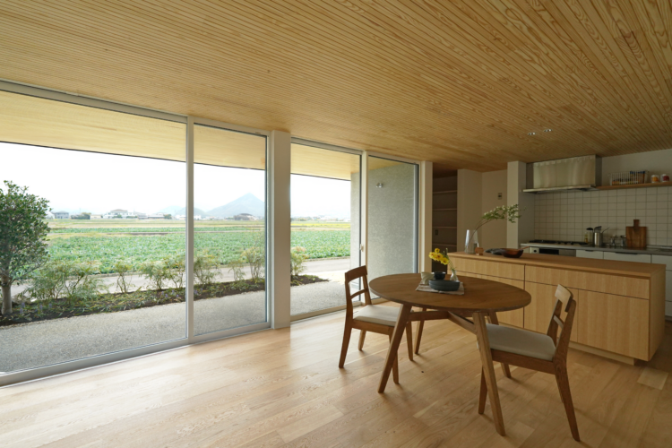 - 心癒される景色を切り取る、天井まで続く大開口と深い軒