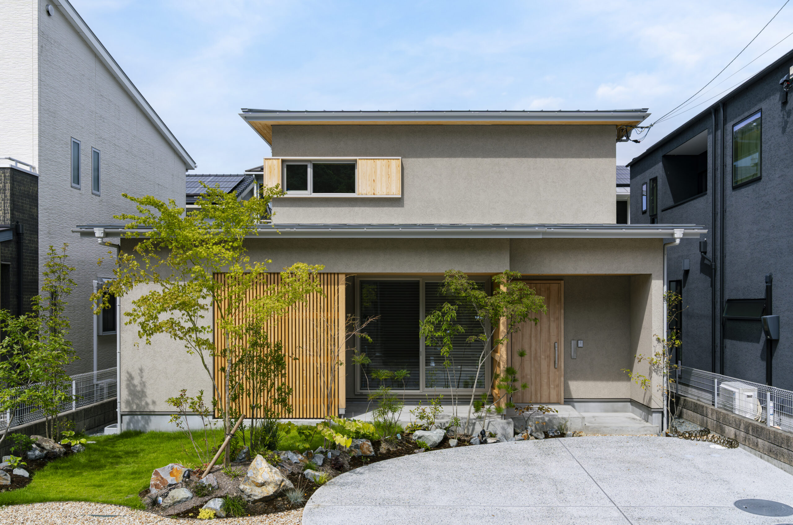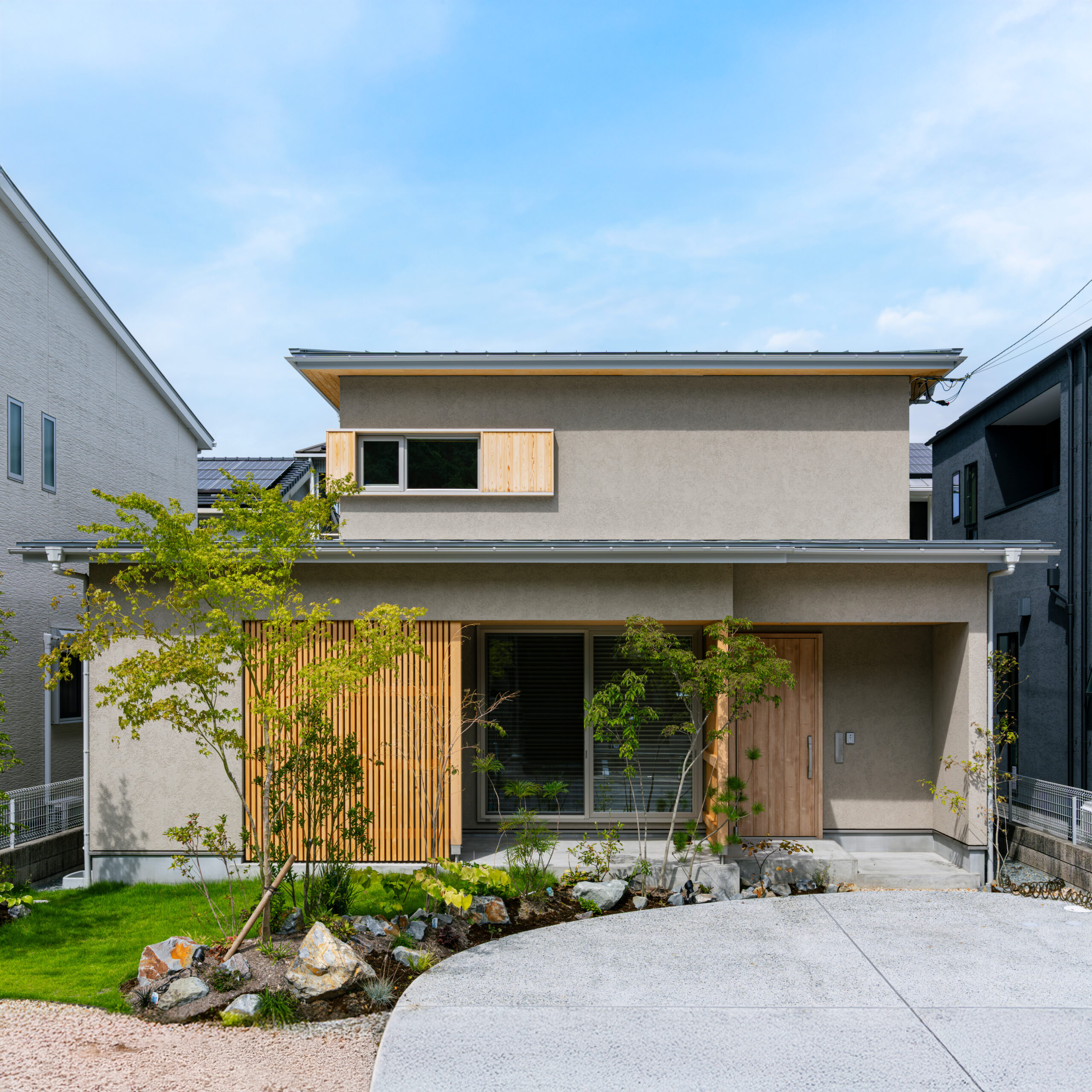 和モダンなテイストが好きとのことで格子や板張りを用いた外観に。