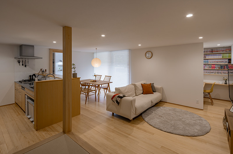 南側全面の土間プランを改良して生まれた家族の気配を感じる書斎。