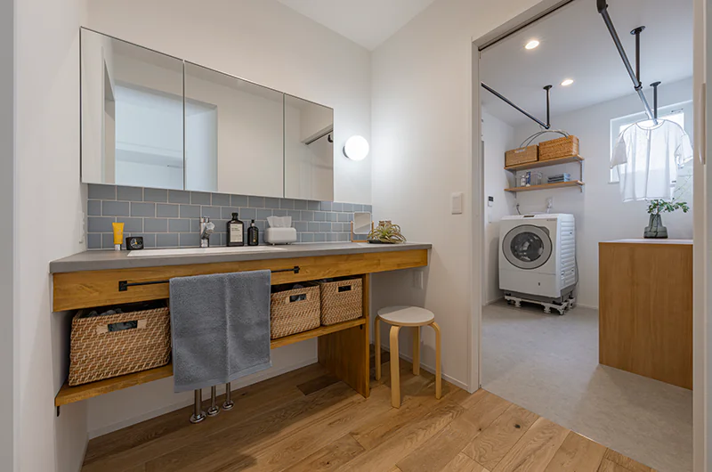 設計時には、家事室で実際に家事をする様子を思い浮かべながら、効率的に進められる最適な配置を検討します。
