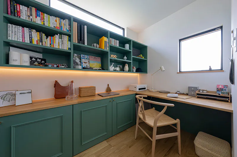 家事室に洗濯物を干す場合は空間の多湿化が懸念されますが、換気設備を整えておけば比較的快適に過ごせます。机と椅子を置いて、デスクワークや趣味のための書斎を兼ねるのも選択肢の一つです。
