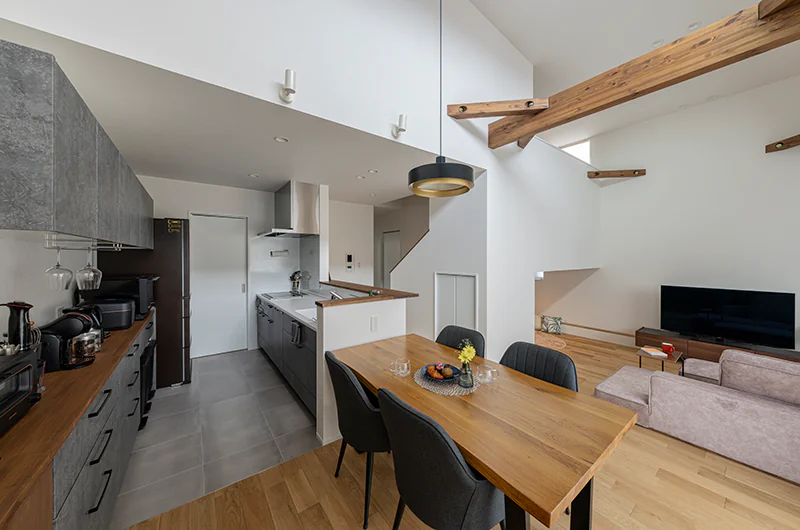 ペンダント照明や間接照明を高さを活かして配置すると、空間の印象が引き立ちます。