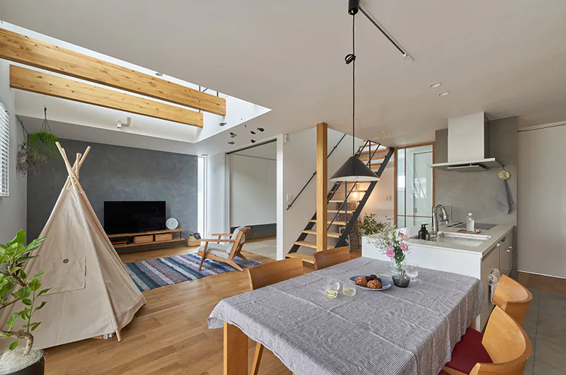上下階が緩やかにつながるため、どこにいても家族の気配を感じやすく、自然な会話が生まれるでしょう。ライフスタイルの変化に合わせて、後から床を張って増築できる点も人気の理由です。