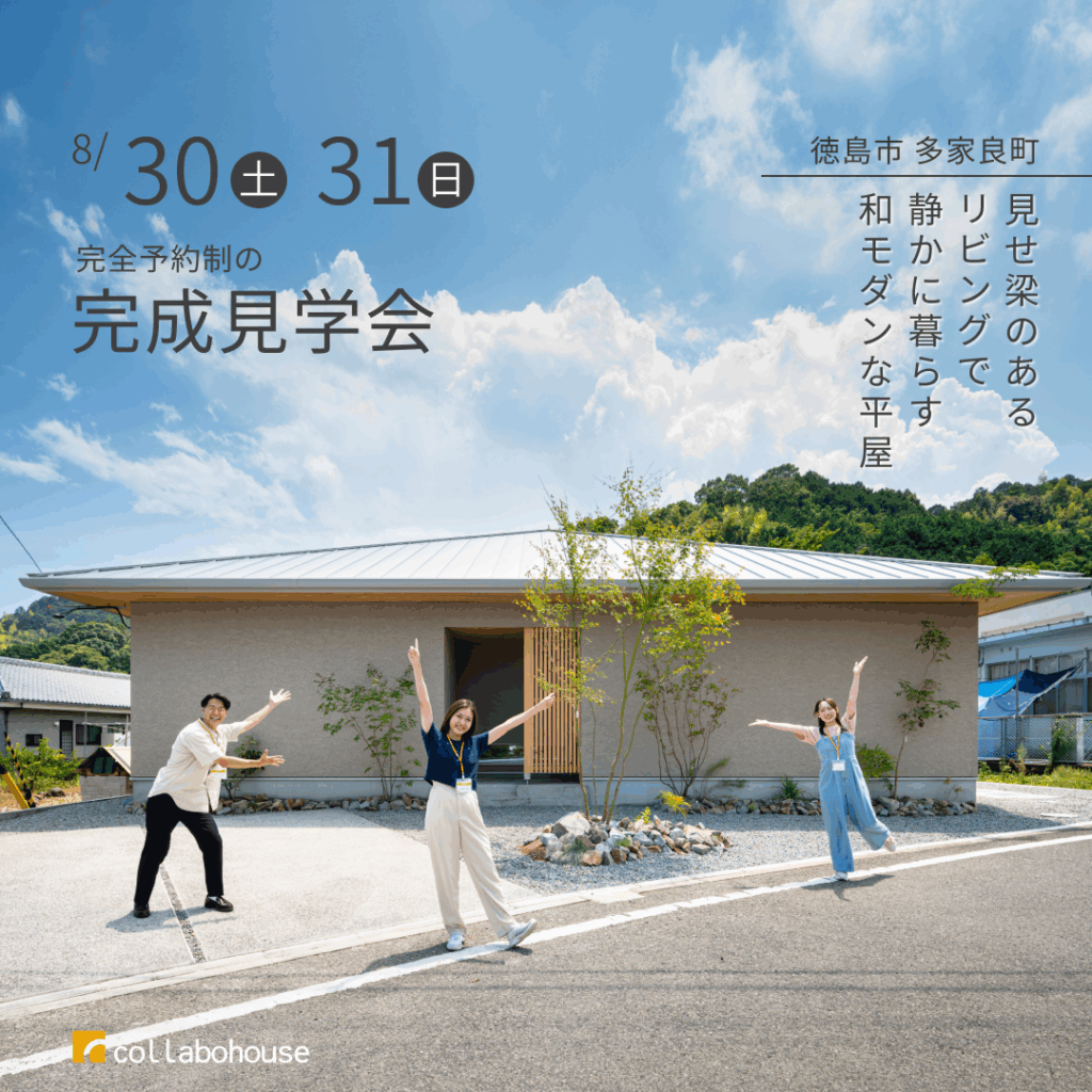 【8/30,31開催】徳島市多家良町にて「見せ梁のあるリビングで 静かに暮らす和モダンな平屋」見学会開催!
