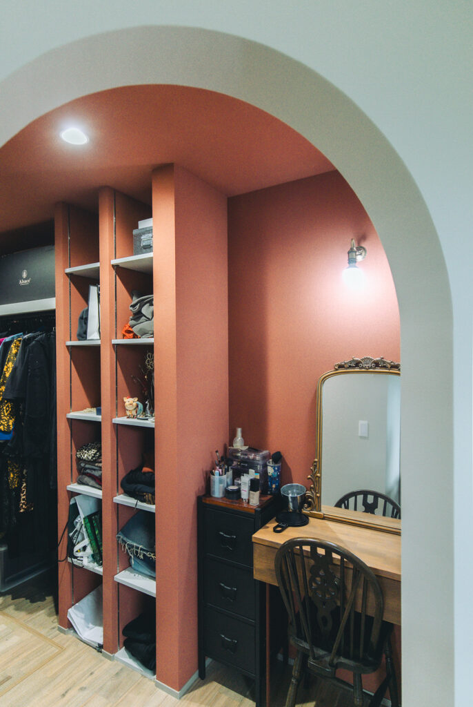 ご夫婦それぞれの個室も兼ねて作った2つのウォークインクローゼットは、片方はファミリークローゼットとしても使え、洗面脱衣室からすぐに衣類をしまえるので便利だとか。
