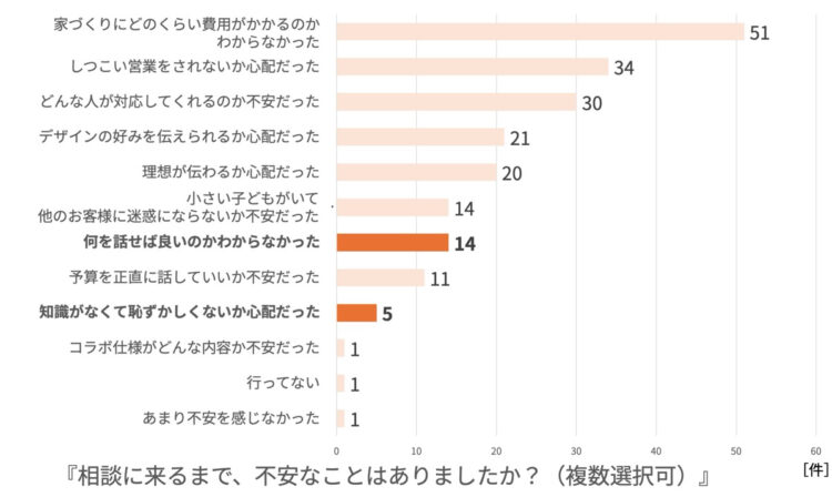 準備が不十分な状態で相談することに対し、多くの検討者が心理的なハードルを感じている実態も浮き彫りになりました。アンケートでは、全体の19.8%(19件)が「何を話せばいいのかわからない」「知識がなくて恥ずかしい」といった不安を回答しています。