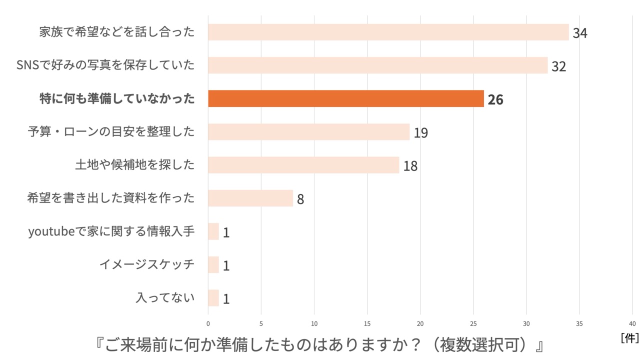 「何も決まっていないから」と相談をためらう必要はありません。 アンケート結果が示す通り、67名(69.8.%)の方が土地を持たず、26名(27.1%)の方が特別な準備を持たずにコラボハウスへ足を運び、最終的に納得のいく家づくりを実現しています。